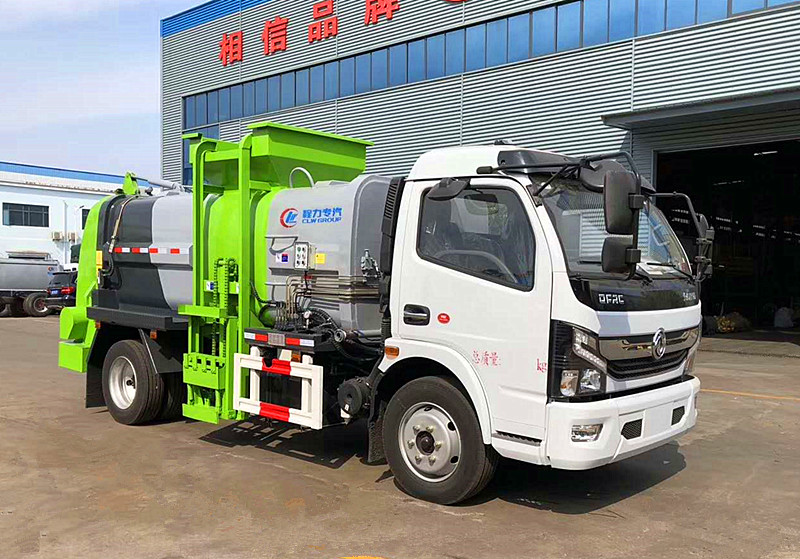 标配: (1)弧形箱体,采用边4底5/边5底6优质碳钢或不锈钢制作。箱体带清洗装置(液压马达带动高压泵、带清水箱)。 (2)长源油泵,江苏多路阀,博液压油缸。 (3)全推铲卸料(不带举升功能)具有干湿分离功能。后门液压锁紧,配耐磨防腐硅胶密封条。 (4)链条式(拉杆式)提升机,可挂120或240L标准塑料垃圾桶。进料口盖液压开关(防止车辆在运输途中餐厨垃圾溢出现象) (5)驾驶室内集中电控(提升机外部手动**),后门锁紧与后盖开关,具有防误操作功能。